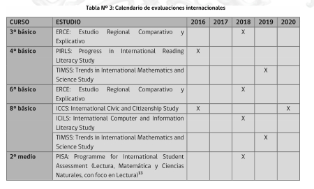 Tabla Nº 3: Calendario de evaluaciones internacionales
