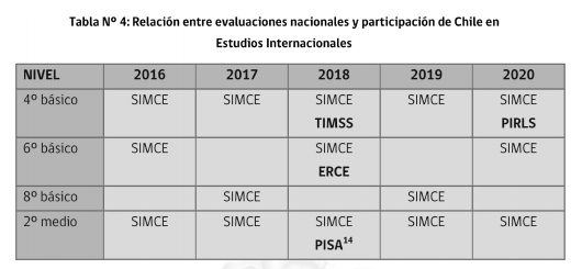 Tabla Nº 4: Relación entre evaluaciones nacionales y participación de Chile en Estudios Internacionales