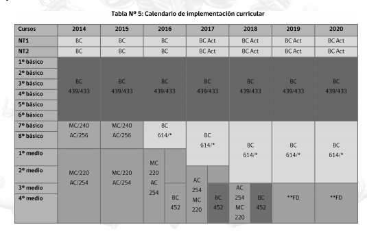 Tabla Nº 5: Calendario de implementación curricular