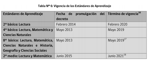 Tabla Nº 6: Vigencia de los Estándares de Aprendizaje
