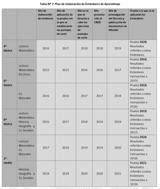 Tabla Nº 7: Plan de elaboración de Estándares de Aprendizaje