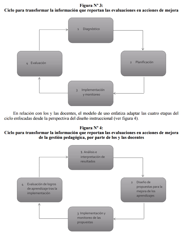 Por último, cabe mencionar que, a diferencia de otros países, Chile no cuenta con evaluaciones o exámenes externos de carácter certificativo (de promoción) de los y las estudiantes, es decir, con consecuencias a nivel individual. La evaluación de los aprendizajes, tanto en su función certificativa (también llamada sumativa) como en su función propiamente de fortalecimiento del aprendizaje (también llamada formativa), está en manos de los equipos docentes de los establecimientos. En este contexto, el Mineduc reconoce que la información que los mismos establecimientos educacionales generan para tomar decisiones de gestión y pedagógicas es muy relevante para los distintos actores, pero ha sido poco visibilizada y apoyada, por lo que se estima fundamental desarrollar capacidades en los equipos directivos y docentes para la obtención, interpretación y uso de información sobre los aprendizajes para definir e impulsar mejoras. Esta necesidad de fortalecer y apoyar la evaluación que realizan los y las docentes en aula -y la reflexión y uso que se hace de ella- es reconocida por ellos y ellas, y ha sido evidenciada por los resultados de la evaluación docente en nuestro país. Aún más, esta necesidad fue una de las principales conclusiones del Equipo de Tarea (2014), el cual recomendó "diseñar e implementar una política amplia para potenciar la evaluación de aprendizajes que realizan docentes y directivos al interior de los establecimientos escolares y complementarla con las mediciones externas".