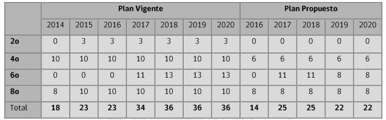 nsideradas para la ordenación en educación básica, según plan vigente y plan propuesto. .