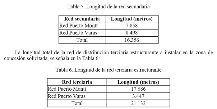 Séptimo. La longitud total de la red de distribución secundaria a instalar en la zona de concesión solicitada, se señala en la Tabla 5: