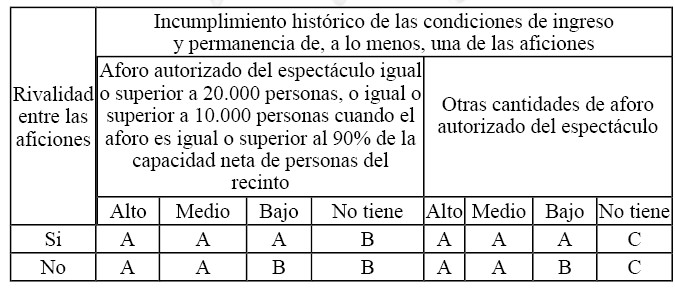 4° Que se han aplicado diversos criterios, que corresponde armonizar, respecto a las exigencias para la autorización y clasificación de los recintos deportivos y de los espectáculos de fútbol profesional; y a la determinación de medidas adicionales de seguridad, entre otras.