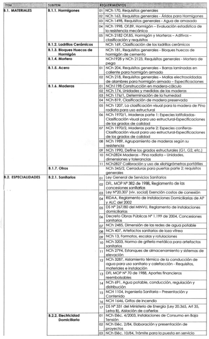 a) Que el DS Nº49 (V. y U.), de 2011, en su texto reemplazado por el DS Nº 105 (V. y U.), de 2014, en sus artículos 44 y 47, faculta al MINVU para aprobar por resolución el Itemizado Técnico de Construcción que determine los requisitos mínimos que deberán cumplir los proyectos habitacionales, según el tipo y zona geográfica donde se ubiquen.