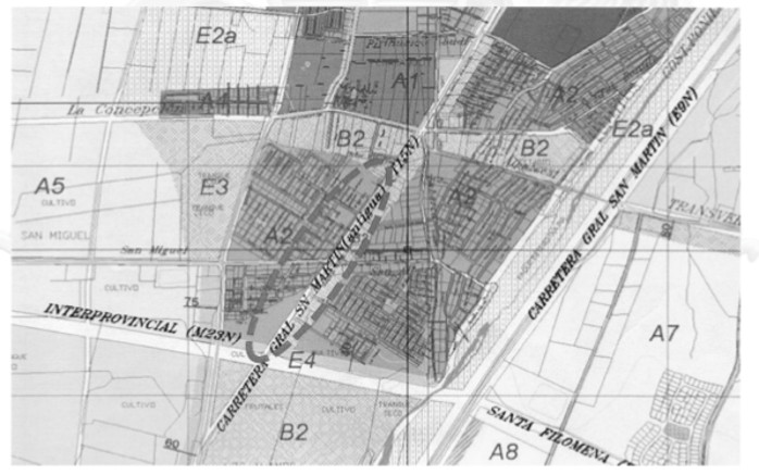 Figura 2. Zona B "Zona de Equipamiento" frente a la Carretera General San Martín (Antigua).