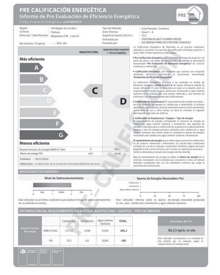 La Calificación Energética de Viviendas (CEV), es un instrumento de uso voluntario, que permite realizar una evaluación objetiva y estandarizada para estimar y clasificar el requerimiento energético de una vivienda para lograr una temperatura considerada como confortable para sus usuarios.