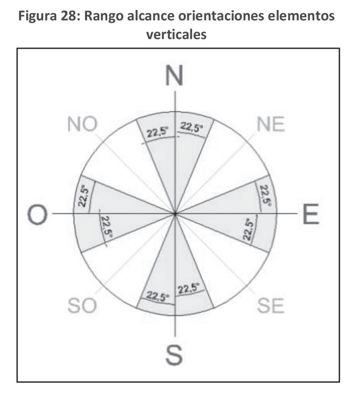 Si por motivos de diseño y espacio se deben utilizar diferentes ángulos de azimut para los diferentes colectores, para determinar el ángulo a incluir se procede como sigue: se considera solo el 80% de los colectores fotovoltaicos con mejor orientación (más próximos a la orientación Norte). De este grupo del 80% de mejor orientación, se debe considerar el valor del colector que presente una orientación más desfavorable, es decir, la que más se aleja del Norte.