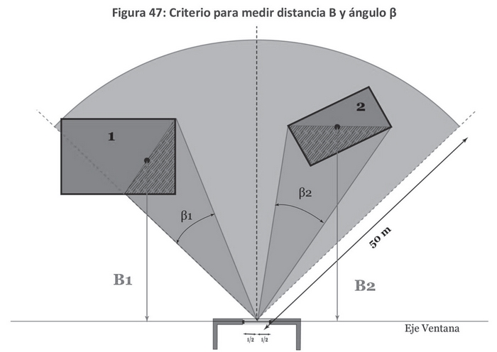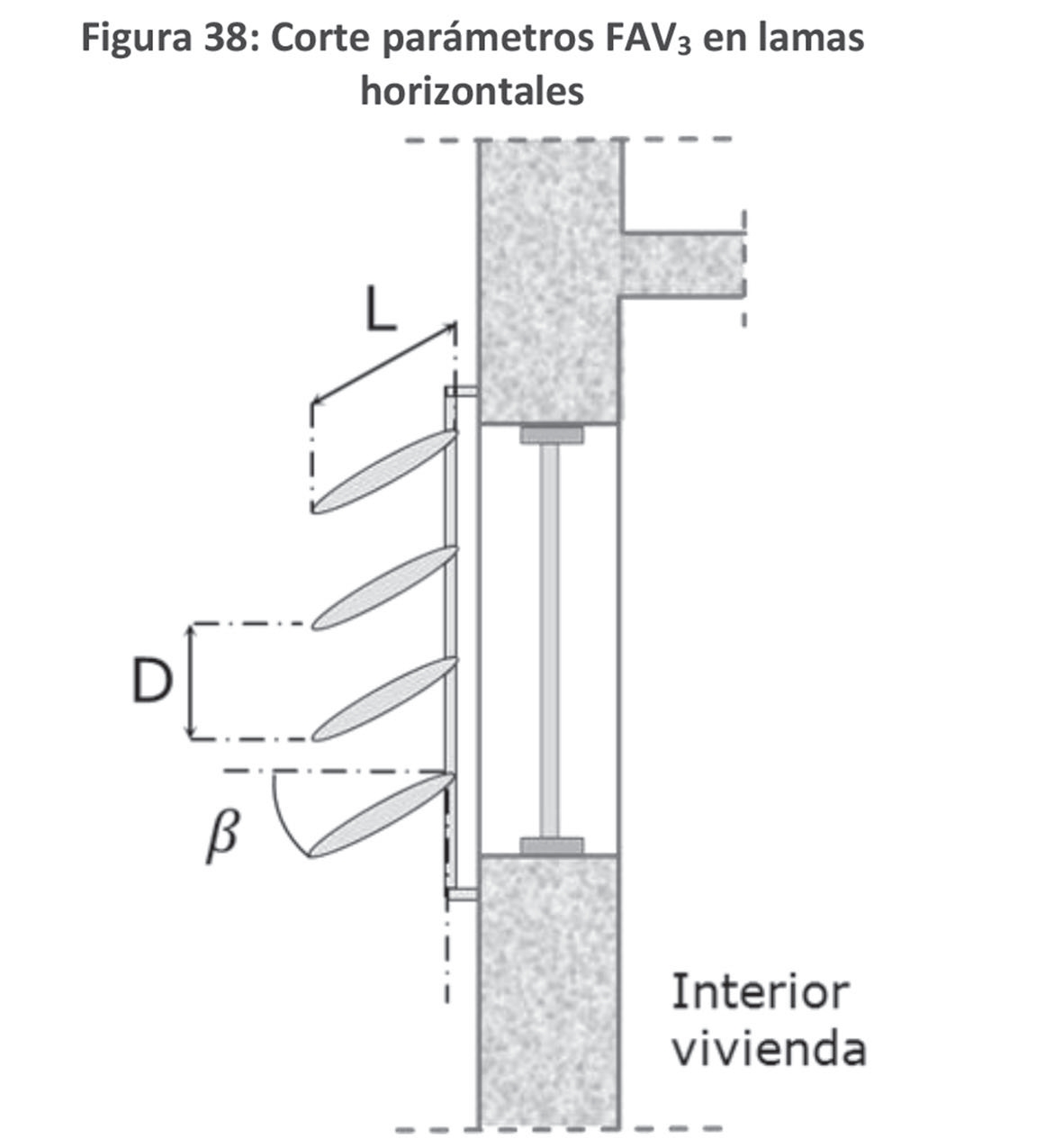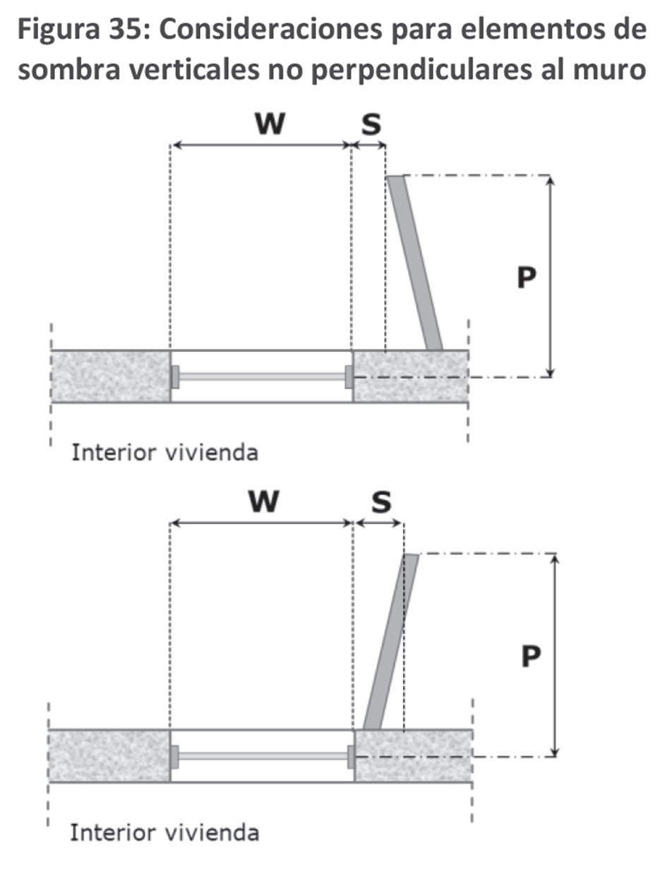 Para utilizar esta opción se debe adjuntar una memoria de cálculo en formato libre, donde se demuestre que más del 50% de la radiación solar directa que incidiría sobre las ventanas es interceptada por estos elementos. Una opción simplificada de cálculo es demostrar que, para el 21 de diciembre, a las 17 h, los sistemas de protección solar impiden el paso de la radiación solar directa a más del 60% de la superficie de ventana de la vivienda.