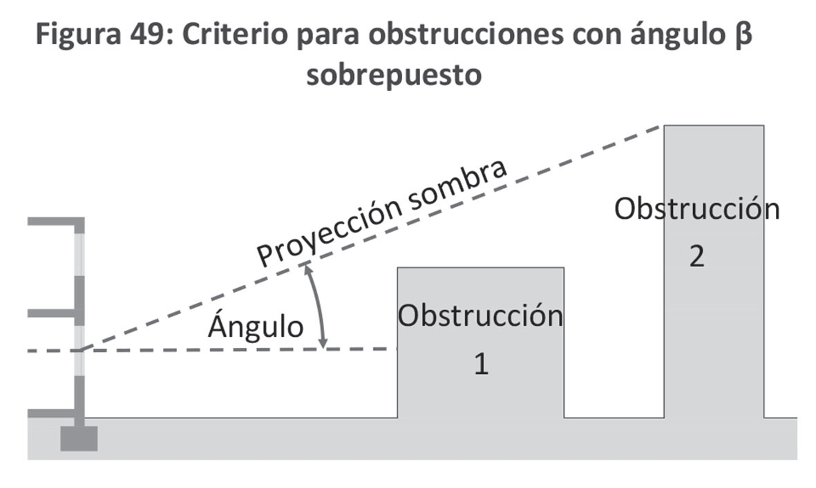 Corrección por elementos de sombra. Este factor se considera cuando existen sombras proyectadas sobre los colectores. En este caso, se debe utilizar la metodología de la Norma Técnica de la Ley 20.365 del gobierno de Chile.