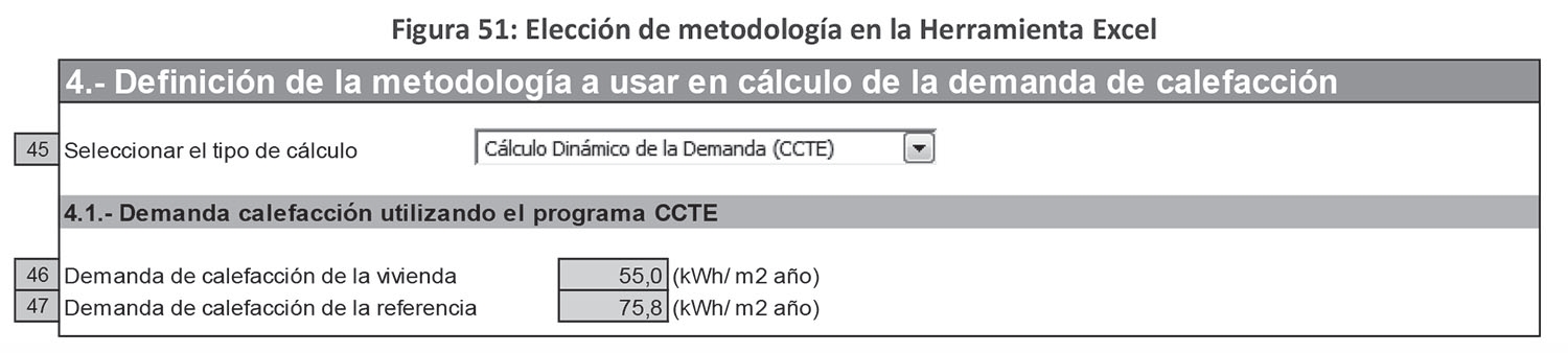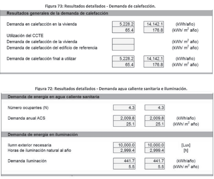 . En la Figura 73 se presentan los resultados generales del cálculo de la demanda de energía en calefacción. La demanda de calefacción final a utilizar depende de la activación o no de los resultados del CCTE. Si se anotan los resultados del CCTE, el método utilizará automáticamente estos resultados para el resto de los cálculos. En caso contrario, se utilizarán los resultados del método estático.