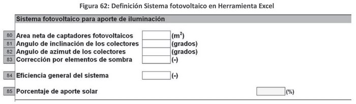 En el caso de que no se disponga de colectores solares fotovoltaicos, se debe asegurar que todas las celdas de ingreso de datos relativas al sistema estén vacías (poner valor cero en estas celdas).