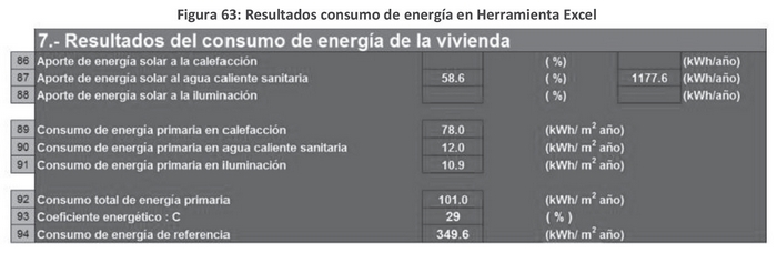 En la Figura 64 y Figura 63 se presentan los resultados principales del cálculo de consumo de energía en la vivienda. Estos resultados se incluyen en esta sección con la finalidad de que en esta etapa el Evaluador Energético efectúe un chequeo para asegurarse de que ha ingresado los datos en forma correcta.