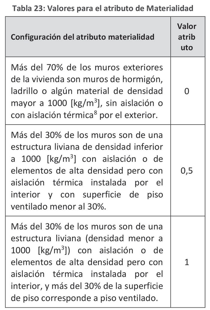9 Para efectos de este atributo, se considera que un material constituye aislación térmica cuando tiene una conductividad igual o menor que 0,08 W/K*m.
