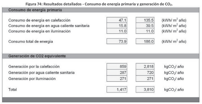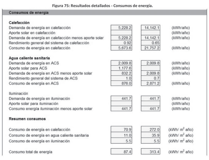 12.8. Resultados del consumo de energía primaria en calefacción, agua caliente sanitaria e iluminación.