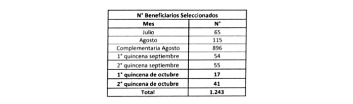 2. Apruébase la nómina de postulantes seleccionados correspondiente a la primera y segunda quincena de octubre, para el otorgamiento de subsidios habitacionales correspondiente al llamado extraordinario del Programa de Protección del Patrimonio Familiar, Título II, Mejoramiento de la Vivienda, para financiar la adquisición de materiales y la contratación de servicios de construcción y reparación, dispuesto en el Resuelvo N° 3.1 de la resolución exenta N° 360 (V y U.), de 2016 y sus modificaciones, la que se adjunta y se entenderá formar parte integrante de esta resolución. Fijase además el número de postulantes seleccionados, correspondientes a la primera y segunda quincena de octubre para la Región de Coquimbo, según se indica en la siguiente tabla: