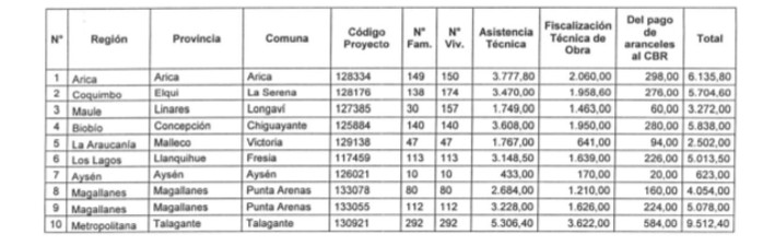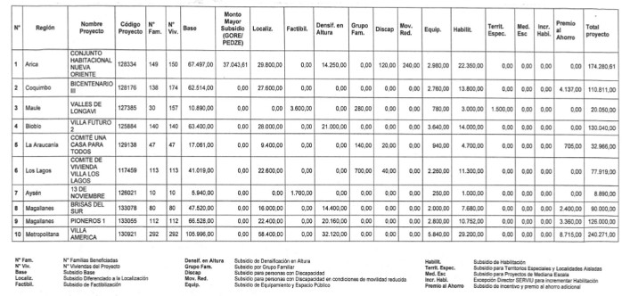 La letra a del numeral 2 de la Resolución 417 Exenta, Vivienda, publicada el 27.01.2017, modifica la presente norma en el sentido de reemplazar las filas Nº 1, 10 y Total de la tabla de la manera que la citada norma indica.
