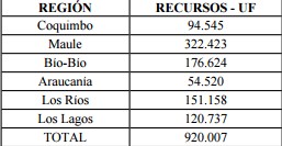 1.4 Sustitúyase el actual resuelvo 14, por el siguiente: Los recursos involucrados para la selección ascienden a un total de 920.007 UF y su distribución regional será la siguiente: