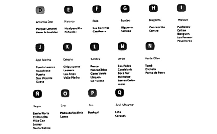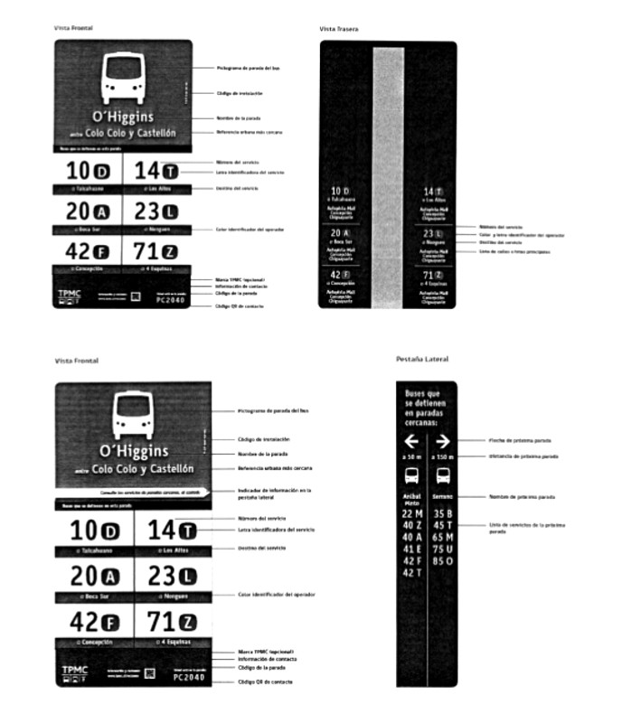 1º.- Autorízanse las siguientes señales especiales de Paradas de Buses para el sistema de transporte público del Área Metropolitana de Concepción: