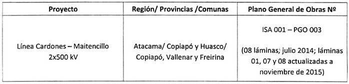 La división por tramos de la línea de trasmisión "Línea Cardones - Maitencillo 2x500 kV", no afectará en modo alguno la prohibición de fraccionamiento contemplada en la ley Nº 19.300.