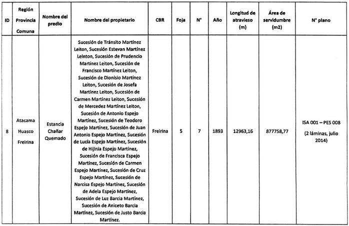 Artículo 7º.- Constitúyase, de acuerdo con lo que sobre el particular establece la Ley General de Servicios Eléctricos, la servidumbre para el establecimiento del Tramo 2.1. de la "Línea Cardones -Maitencillo 2x500 kV" en el predio que se indica a continuación: