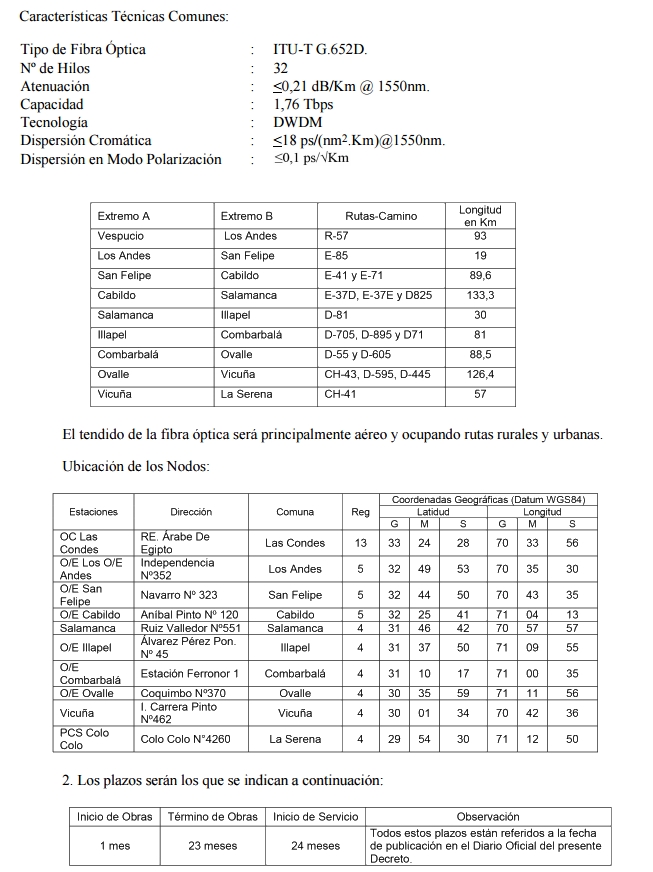3. Apruébase el proyecto técnico base de la solicitud presentada por la concesionaria, en lo relacionado con los sistemas y equipos de telecomunicaciones autorizados en el presente decreto, conforme a las disposiciones técnico legales que rigen el servicio de telecomunicaciones concedido. La documentación respectiva quedará archivada en la Subsecretaría de Telecomunicaciones.