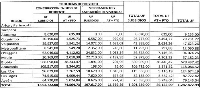 4. Comprométense los recursos disponibles para la segunda selección correspondiente al cierre del 16 de diciembre de 2016, del Llamado Nacional en Condiciones Extraordinarias de 2016 del Programa de Habitabilidad Rural en su Título II, para las tipologías de proyectos que indica el cuadro precedente, los que se destinarán al financiamiento de los subsidios y al pago de los servicios de Asistencia Técnica y Fiscalización Técnica de Obras, según la distribución por tipología de proyecto y por región, señalada en el cuadro incluido a continuación: