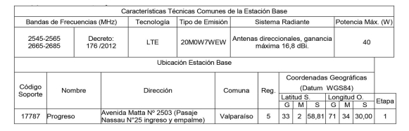 1. Autorízase a la concesionaria para instalar, operar y explotar una (1) Estación Base, cuyas características técnicas se indican a continuación:
