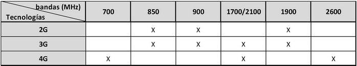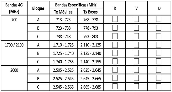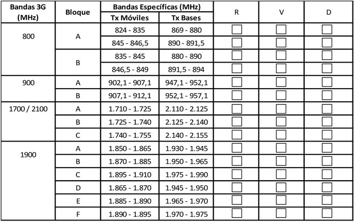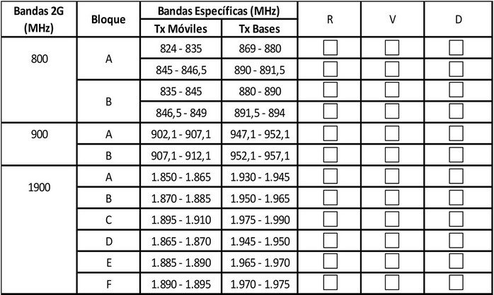 8.- Reemplácese en el ANEXO I, la tabla de Soporte de Bandas por: