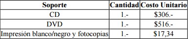 1. Fíjanse, a contar de la fecha del presente acto, los siguientes valores por los costos de reproducción relacionados con las solicitudes de acceso a la información que sean presentados en virtud de la ley N° 20.285:
