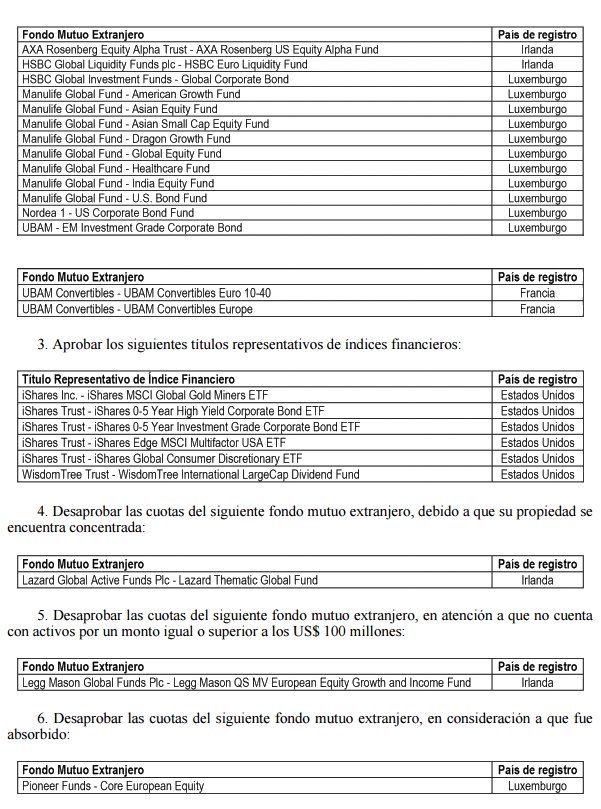 2. Aprobar las cuotas de los siguientes fondos mutuos extranjeros: