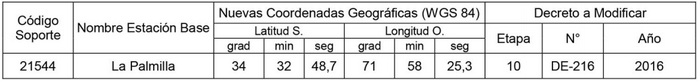 1. Autorízase a la concesionaria para rectificar las coordenadas geográficas de la Estación Base que a continuación se indica: