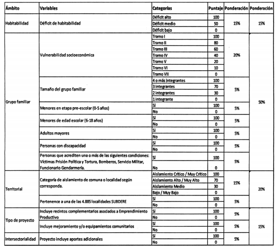 18. La selección de los postulantes para la asignación del subsidio se realizará conforme al orden de prelación que determine el respectivo puntaje del Expediente de Postulación, ordenados de mayor a menor, hasta enterar el total de recursos disponibles para este llamado. Los factores para determinar el puntaje que definirá la prelación entre los postulantes serán los siguientes: