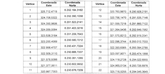 Artículo 2º. Límites. Los límites del Santuario de la Naturaleza se encuentran representados en el mapa adjunto, que detalla coordenadas referenciales del respectivo polígono, según Datum WGS84, proyección UTM, Huso 19 sur, las que se indican a continuación: