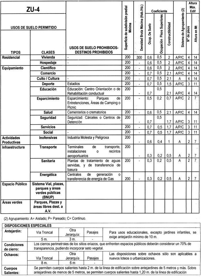 .Artículo 13 ZU-4: Zona Urbana Residencial 4