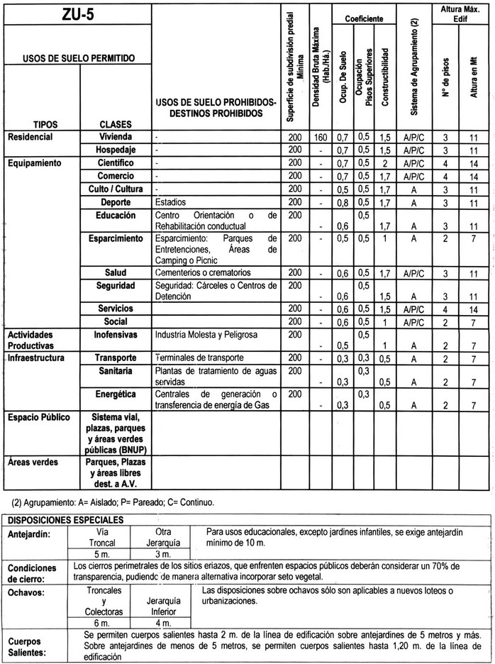 .Artículo 14 ZU-5: Zona Urbana Residencial 5