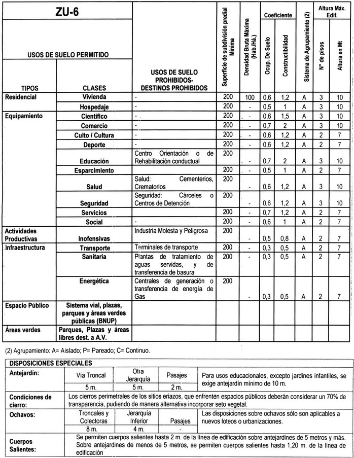 .Artículo 15 ZU-6: Zona Urbana Residencial 6