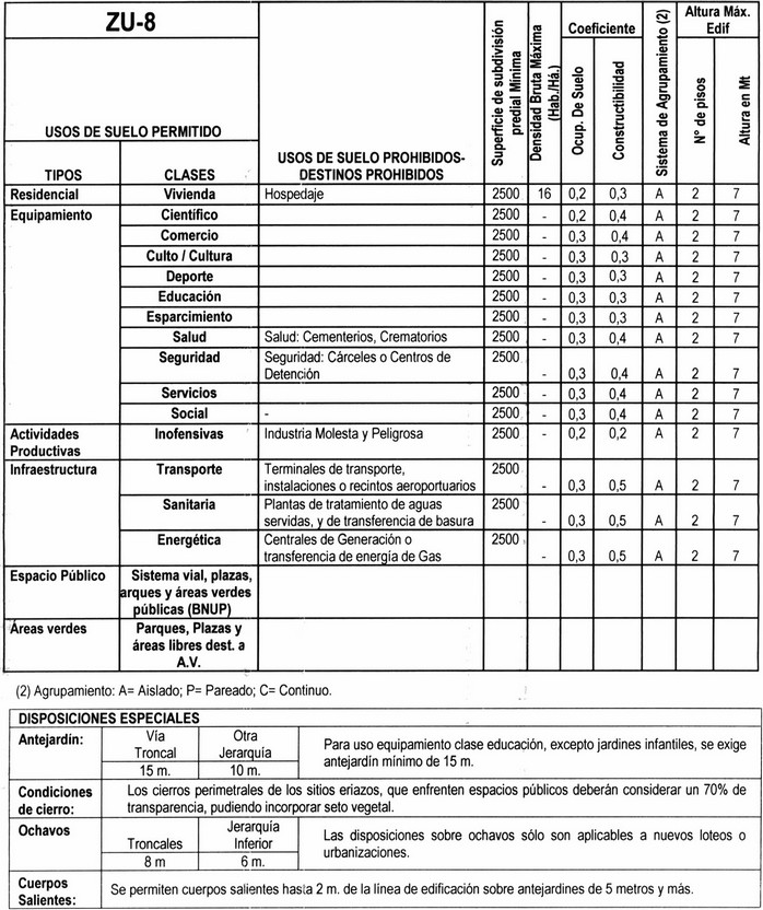 .Artículo 17 ZU-8: Zona Urbana Residencial 8