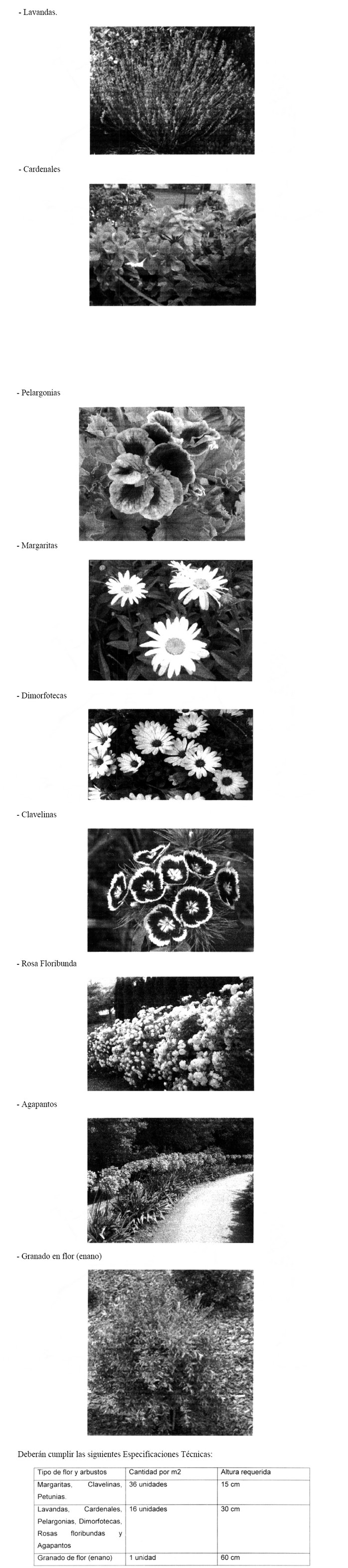 . Se podrán incorporar otras especies, las que deberán ser similares a las flores y arbustos de la tabla en cuanto a cantidad por metro cuadrado y altura requerida, y deberán estar definidas en planos y Especificaciones Técnicas, sujetas a la aprobación del Departamento de Aseo y Ornato y Dirección de Obras.