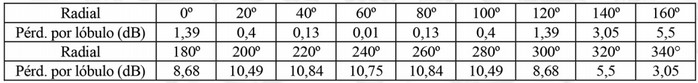 - Pérdidas en cables, conectores y otros : 1,29 dB.