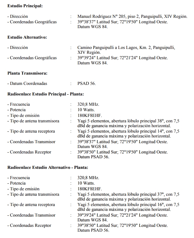 MODIFICA CONCESIÓN DE RADIODIFUSIÓN SONORA EN FRECUENCIA MODULADA PARA LA CIUDAD DE PANGUIPULLI