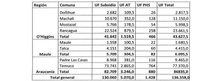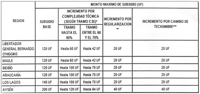** Al monto de subsidio de regularización se le podrán adicionar hasta 50 UF en casos de viviendas que no tengan ningún recinto con recepción final.