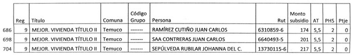 2.1 Elimínase de la Nómina de Beneficiarios de la Región de la Araucanía, a las siguientes personas que postularon en forma individual, que figuran en las filas que se señalan a continuación: