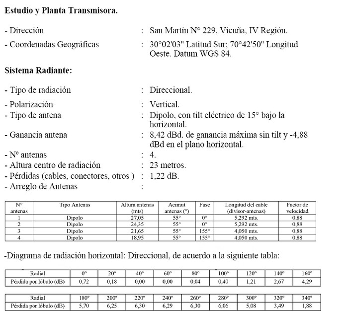 3. Autorízase a la concesionaria para cambiar de ubicación el estudio, la planta transmisora y cambiar características técnicas del sistema radiante, en los términos que a continuación se señalan: