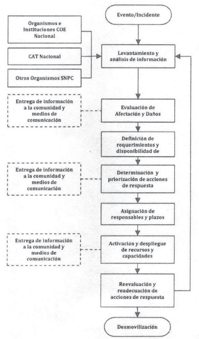 2. Que, ante la necesidad de contar con un instrumento de nivel nacional que establezca las acciones de respuesta, ante situaciones de emergencia, desastres y catástrofes; basadas en el marco legal vigente, los roles, funciones, capacidades y competencias de organismos del Sistema Nacional de Protección Civil.