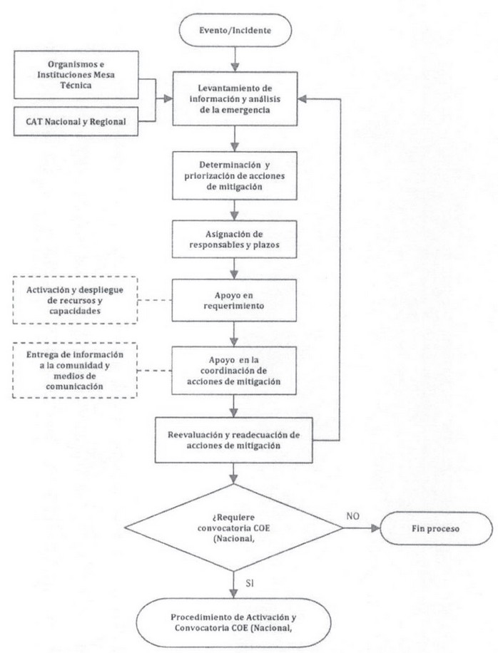 . Alcance: desde una perspectiva multiamenaza contempla emergencias, desastres y catástrofes ocurridas en el territorio nacional, estableciendo acciones de respuesta de manera general, basadas en el marco legal vigente y los acuerdos técnicos establecidos para estos efectos.