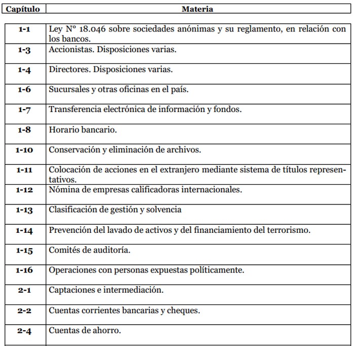 Mediante la presente Circular se agrega a la Recopilación Actualizada de Normas el nuevo Capítulo 1-16 cuyo texto se acompaña, el que contiene instrucciones sobre la materia indicada en la referencia.