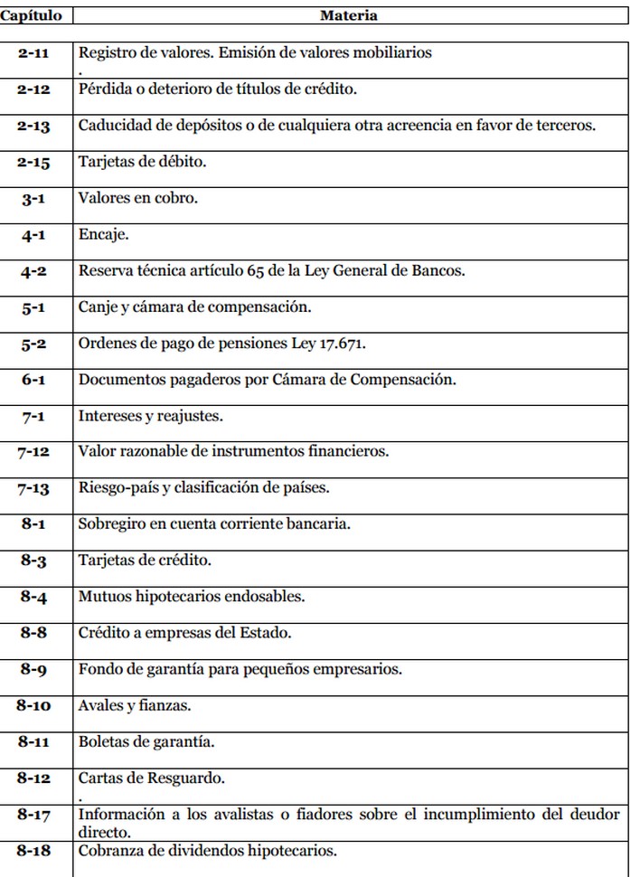 Sobre la base de un estudio conducente a adecuar los actuales formularios de los cheques y demás documentos que se presentan a cobro en la Cámara de Compensación, realizado por la Asociación de Bancos e Instituciones Financieras A.G. con el objeto de establecer estándares de seguridad comunes, mejorar la calidad de las imágenes que se capturan de los documentos y facilitar la lectura de la información por medios electrónicos, mediante la presente Circular se reemplaza el Capítulo 6-1 de la Recopilación Actualizada de Normas, por el nuevo texto que se acompaña.