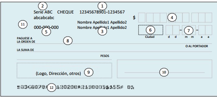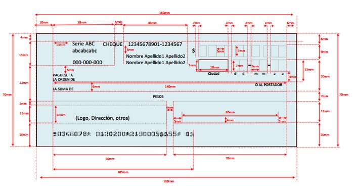 b) Los siguientes antecedentes se incluirán en la misma ubicación que la instruida para los cheques: i) el importe numérico del valor que debe pagar el banco; ii) la fecha, que corresponderá a la emisión; y iii) el espacio para los caracteres magnéticos.